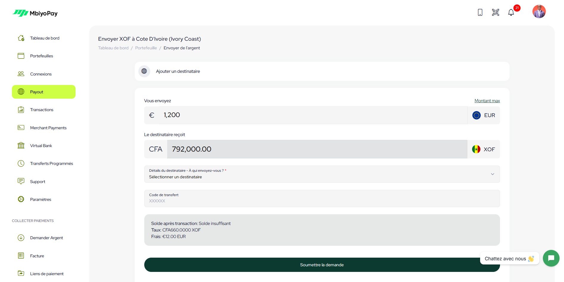 Envois des EUR, ils recoivent en XOF, XAF, USD, GNF, NGN, KES.