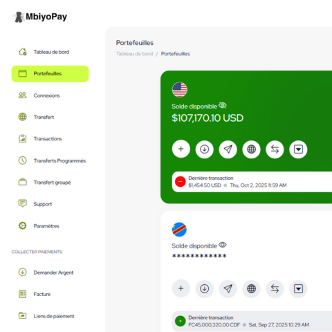 Avec Mbiyopay Global, vous pouvez gérer, convertir et retirer vos fonds en toute simplicité — que ce soit en monnaie locale ou en crypto.