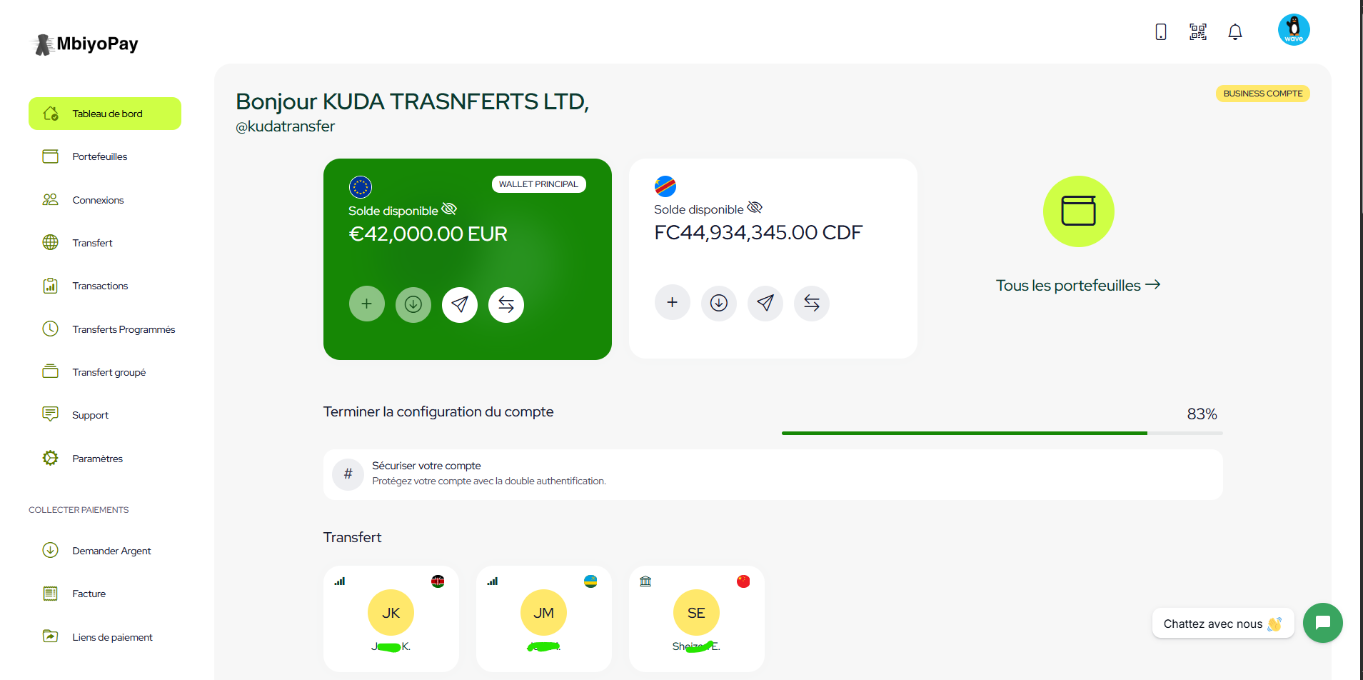 J’utilise Mbiyopay pour encaisser mes paiements clients en Europe. Le virement arrive sur mon compte USD, et je peux le convertir immédiatement en franc congolais. C’est rapide et fiable.