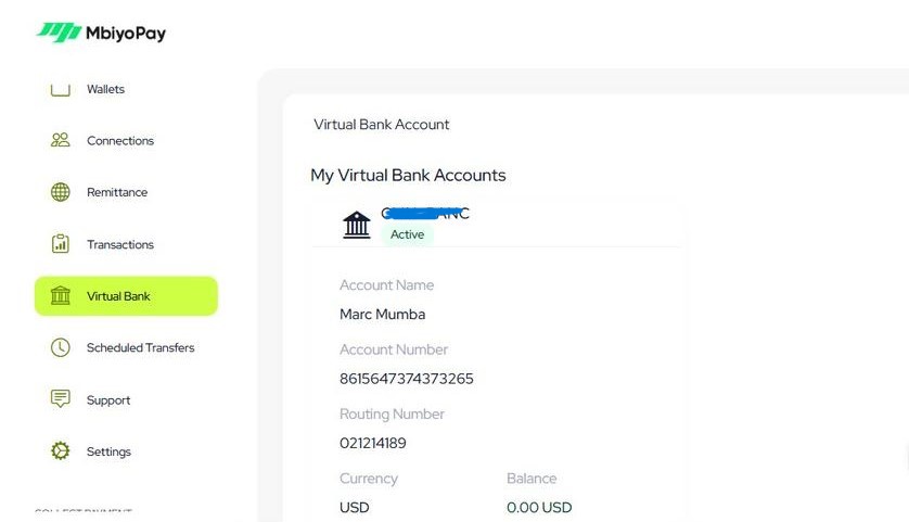 Cette fonctionnalité vous permet d’ouvrir un compte bancaire international personnel ou professionnel en USD, EUR ou GBP directement depuis Mbiyopay.